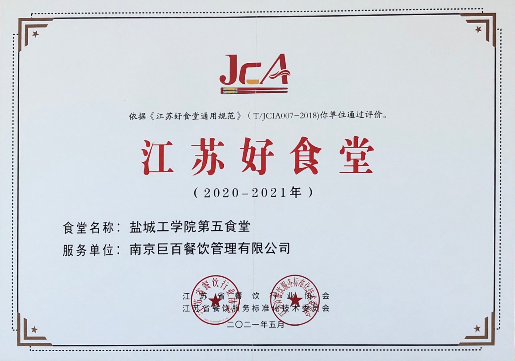 • 2017江蘇餐飲業十佳團餐企業